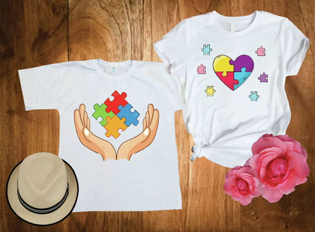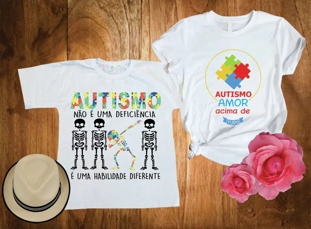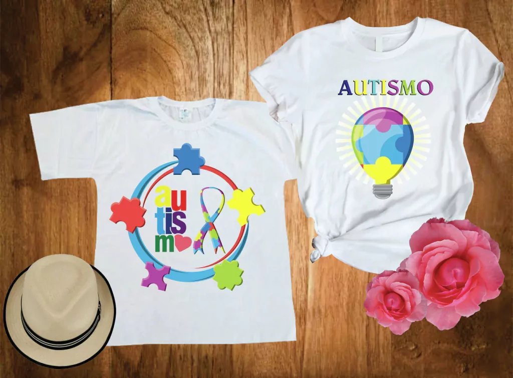 Pacote de artes para personalização de camisetas em homenagem ao Dia Internacional do Autismo. Perfeito para divulgar mensagens de conscientização e inclusão.