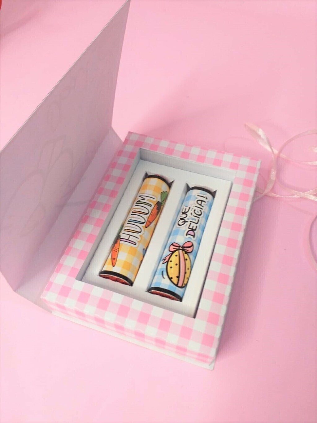 Pacote digital com arte exclusiva para personalização de caixas para 2 Batons, perfeitas para mimos e lembranças de Páscoa. Compatível com máquina de corte e também tesourinha.