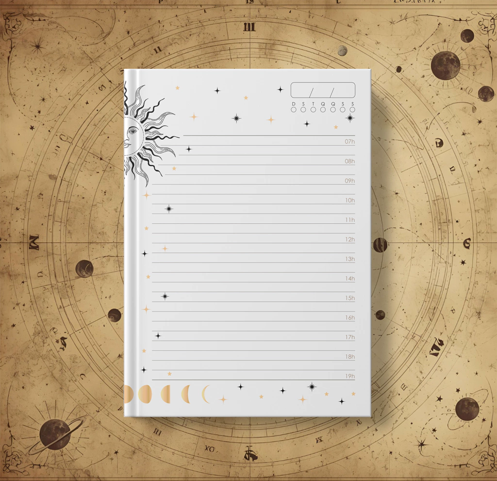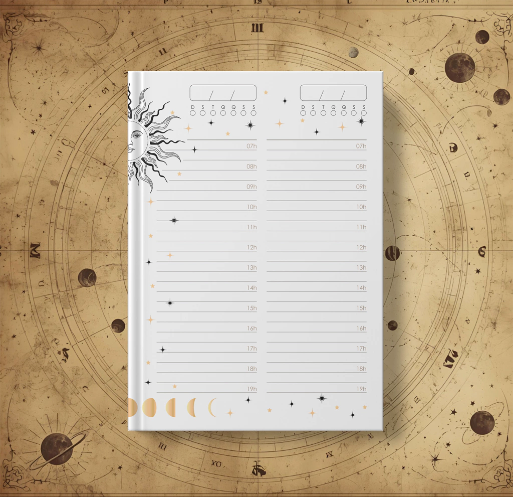 Pacote completo com artes exclusivas para personalização de agendas 2026 no tema Astro, desenvolvido especialmente para modelos de costura francesa e exposta.